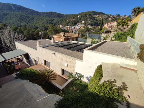 En Cervelló, casa independiente de 280 m² con vistas privilegiadas, gran luminosidad y múltiples espacios: salón con chimenea, 3 habitaciones, despacho, ático polivalente, bodega, garaje y casa anexa con zona de ocio y piscina.