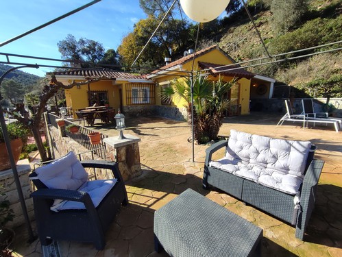 En el exterior encontramos parcela bastante llana con piscina que actualmente no está en funcionamiento. La parcela ofrece muchas posibilidades.