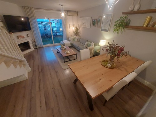 Planta Principal: Al entrar nos da la bienvenida un bonito recibidor que nos da paso al salón/comedor con chimenea y salida a preciosa terraza con zona de chill out, bonita cocina reformada y totalmente equipada, un baño completo con bañera y una pequeña estancia ideal para utilizar como despensa/almacén.