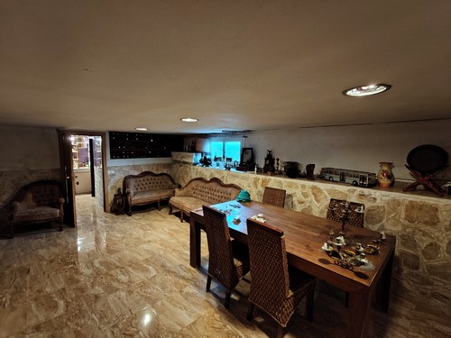Planta inferior: Encontramos una gran bodega junto a salón/comedor ideal para disfrutar con amigos y familia. Esta altura dispone de un espectacular baño completo con jacuzzi y acceso a la zona del garaje con capacidad para 2 coches y excelentes zonas para destinar como trastero/almacén.