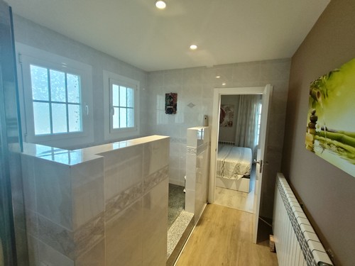 Planta Primera: En esta altura encontramos la master Suite con baño completo privado con plato de ducha y gran bañera y amplio vestidor. También tenemos otra habitación en Suite con su baño completo privado con bañera. Esta altura ofrece una estancia/zona ideal para destinar como zona de estudio/despacho.