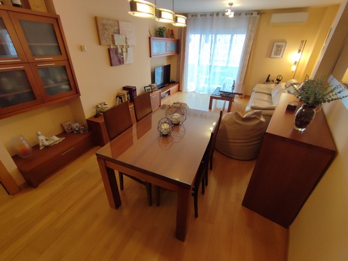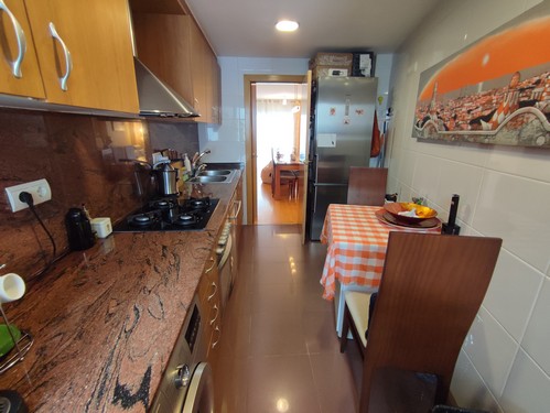 Al entrar al piso nos da la bienvenida un bonito recibidor que nos da paso a amplio salón/comedor con salida a balcón y cocina office totalmente equipada. El piso dispone de 2 habitaciones (1 doble, 1 individual) y un baño completo con plato de ducha.