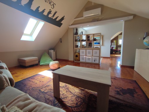 Planta Buhardilla: Encontramos 2 estancias de gran tamaño una actualmente usada como gimnasio y la otra como salón secundario o sala de juegos. Estas estancias se les puede dar cualquier tipo de uso.