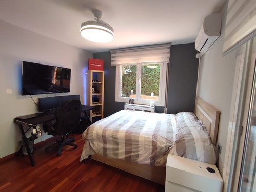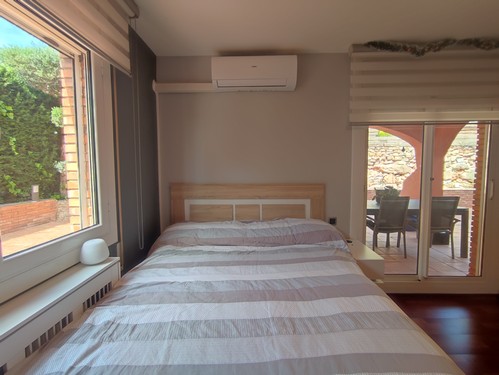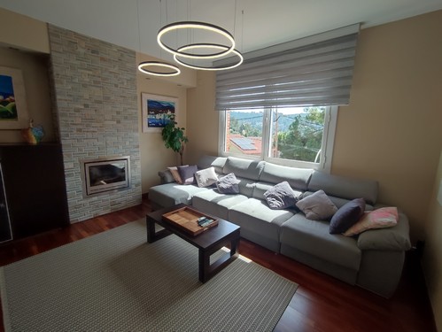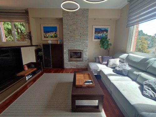 Dispone de calefacción mediante radiadores a través de gas natural, aire acondicionado por bomba frío/calor en varias estancias, placas solares, jardín con riego e iluminación automático, etc..