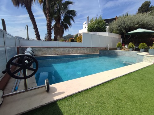En la prestigiosa urbanización de Vall del Sol, en Vallirana, zona residencial y con increíbles vistas al pueblo y las montañas que lo rodea, encontramos esta magnífica casa de 316 m2 construidos en el 1989 sobre una práctica y cómoda parcela de 870 m2 según los datos ofrecidos por el catastro.