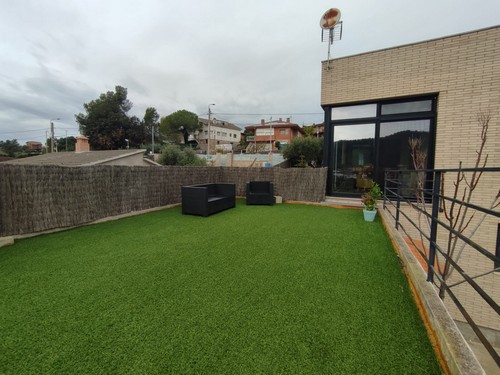 A pie de calle, encontramos la planta principal compuesta por un amplio salón/comedor, impresionante cocina con salida directa a terraza con bonito jardín con césped artificial, 3 habitaciones (2 individuales y 1 en Suite con baño completo y vestidor).