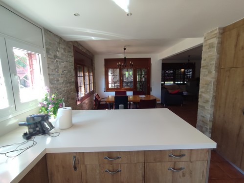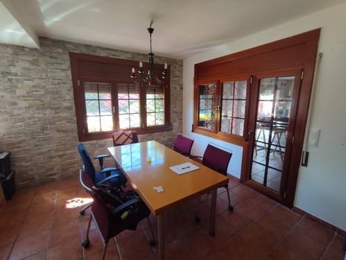 En planta principal encontramos un bonito recibidor que nos da acceso al amplio salón/comedor con chimenea abierto a gran cocina completamente reformada y equipada y salida directa a la zona de la terraza y piscina. En esta misma altura encontramos 1 dormitorio y un baño completo.