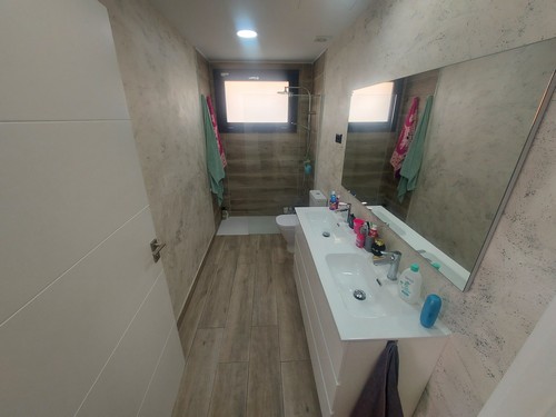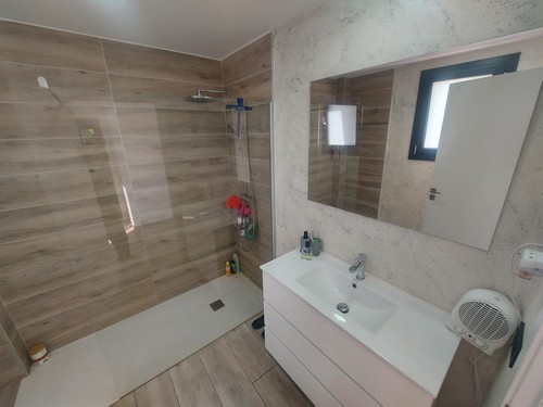 La vivienda con una distribución práctica y muy cómoda está distribuida en una única altura. Cuenta con un amplio salón/comedor abierto con preciosa y amplia cocina con isla completamente equipada. Mediante un distribuidor pasillo nos abre paso hacia 3 habitaciones dobles, una habitación en Suite y 2 baños completos con plato de ducha (uno de los baños forma parte de la habitación en Suite). También dispone de una estancia utilizada como zona lavadero y garaje con capacidad para 1 coche y zonas ideales para destinar como trastero almacén.
