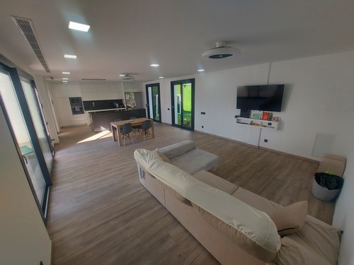 Dispone de sistema de aerotermia para la calefacción y el aire acondicionado, aislamiento térmico y acústico tanto en paredes como en techos que ayudan a obtener la máxima eficiencia energética. También dispone de persianas y toldos automatizados, sistema de alarma con video vigilancia y sistema de osmosis y descalcificadora.