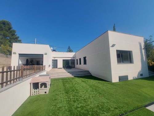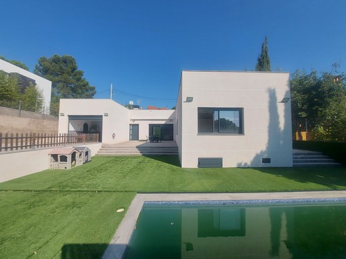 En la exclusiva zona de Fontpineda, en Pallejà, encontramos esta espectacular casa de diseño de 247 m2 construidos en el 2021 sobre una parcela prácticamente llana de 735 m2 según los datos ofrecidos por el catastro.