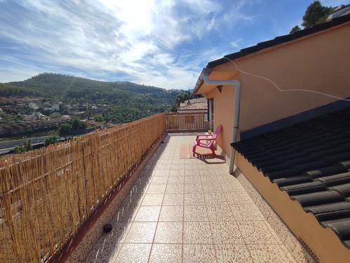 La vivienda distribuida a medias plantas, dispone de gran salón/comedor con chimenea y salida a balcón con impresionantes vistas al pueblo y sus montañas, gran cocina office totalmente equipada, 5 habitaciones dobles con armarios empotrados, 2 baños completos, un aseo y zona buhardilla ideal para una habitación adicional o destinarla como estudio/despacho/oficina o sala de juegos. Esta estancia dispone de salida a terraza solárium de gran tamaño.