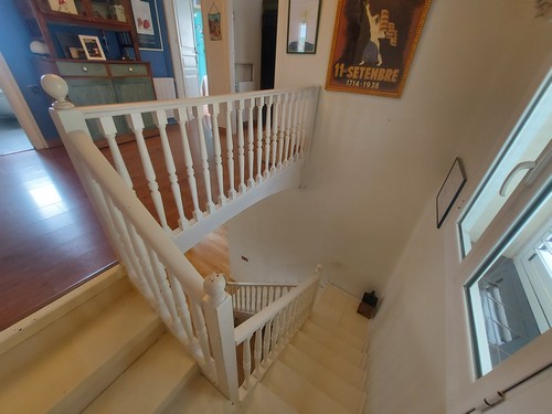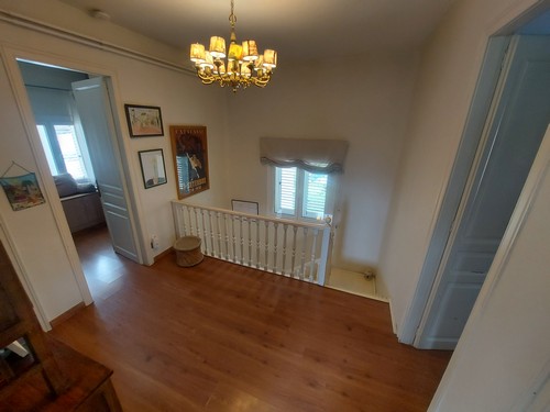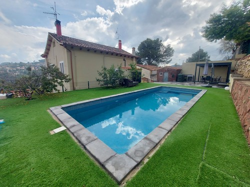 Planta Primera: En esta altura encontramos la zona de noche. Dispone de 4 habitaciones (2 dobles, 2 individuales) y un baño completo con bañera de hidromasaje. Desde una de las habitaciones dobles y desde una de las habitaciones individuales tenemos acceso a una terraza solárium con unas vistas increíbles a Corbera de Llobregat y sus montañas. Una de las habitaciones dobles incluye un vestidor.