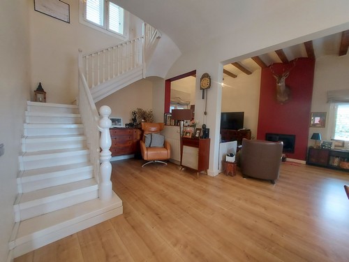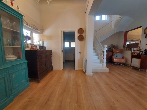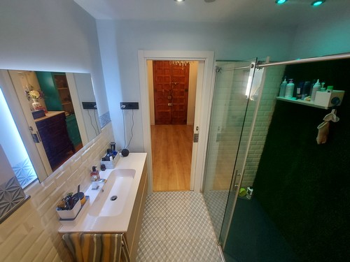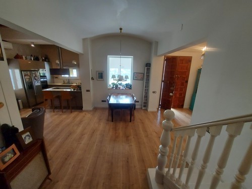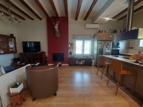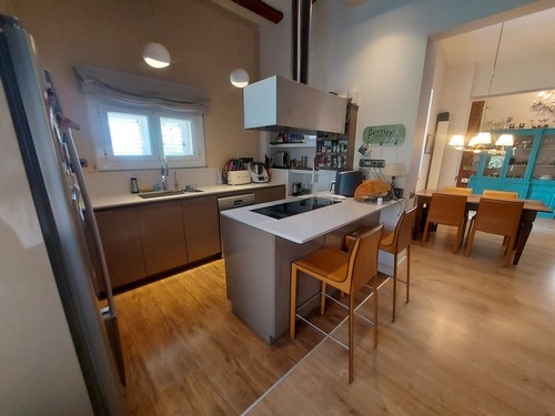Planta Principal: Encontramos un bonito recibidor que nos da acceso al gran salón/comedor con chimenea abierto con cocina office totalmente equipada con electrodomésticos de muy buena calidad. En esta altura encontramos también un baño completo con plato de ducha.