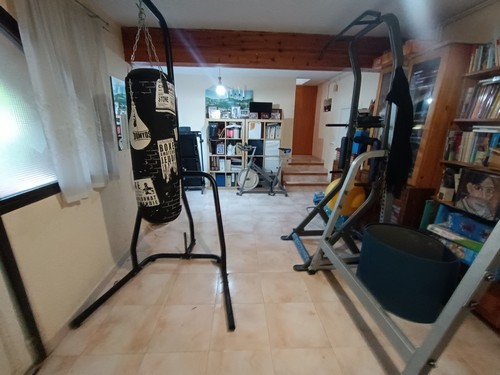 Planta Inferior: Accedemos a esta altura mediante escaleras ubicadas en el salón/comedor de la Planta Principal. En esta altura encontramos una sala polivalente para darle cualquier tipo de uso. Desde gimnasio (uso actual), gran despacho/oficina, sala de juegos o una gran habitación individual. En esta altura también tenemos zonas ideales para destinar como trastero/almacén.