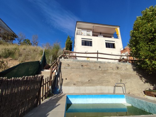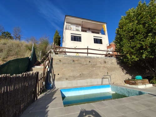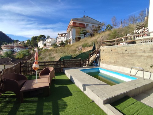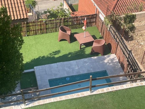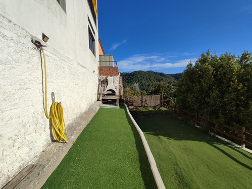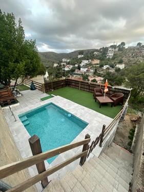 En el exterior encontramos en bancales varias zonas destinadas a jardín, zona de barbacoa y la zona de la piscina para disfrutar con amigos y familia de los meses más calurosos del año.