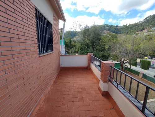 Planta Primera: Encontramos la zona de noche de la vivienda. Está formada por 3 habitaciones (2 dobles, 1 individual) y un aseo de cortesía para dar servicio a esta altura. Desde esta altura tenemos acceso a un precioso balcón que nos ofrece buenas vistas al jardín, las montañas y al pueblo de Vallirana.