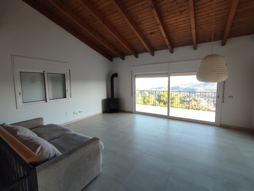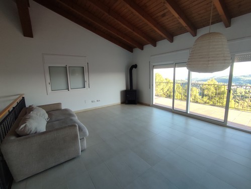 Planta Principal: Al acceder a la vivienda, nos encontramos con un bonito recibidor con acceso al garaje con capacidad para 1 vehículo y zonas ideales para destinar como trastero/almacén a mano izquierda ubicamos la cocina office totalmente equipada y de frente encontramos el amplio salón/comedor con chimenea y acceso a espectacular terraza con unas vistas increíbles a las montañas de Corbera de Llobregat. Desde el salón/comedor tenemos acceso a un aseo de cortesía para dar servicio a esta altura.