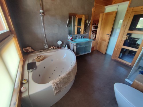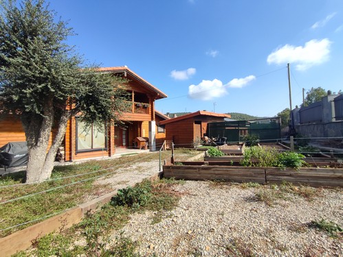 La vivienda fue construida con materiales y acabados de alta calidad, cuenta con excelente orientación, buena entrada de luz natural y total privacidad. Dispone de caldera de pellets, placas solares, placas hidráulicas y suelo radiante.