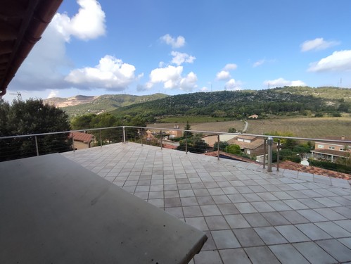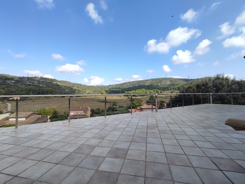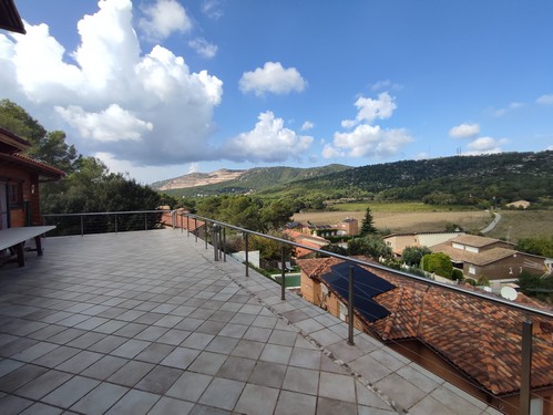 En Begues, en la tranquila zona de Montau, rodeada de naturaleza y con unas preciosas vistas despejadas, encontramos esta magnífica casa con piscina de 553 m² construidos en 2007 sobre una parcela de 912 m², según los datos ofrecidos por el catastro.