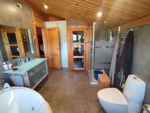 Planta Superior: En esta altura se ubica una segunda vivienda o zona independiente, perfecta para invitados, despacho o incluso apartamento auxiliar, con estancias abiertas, baño completo con jacuzzi y sauna y terraza privada.