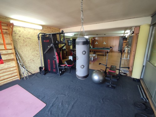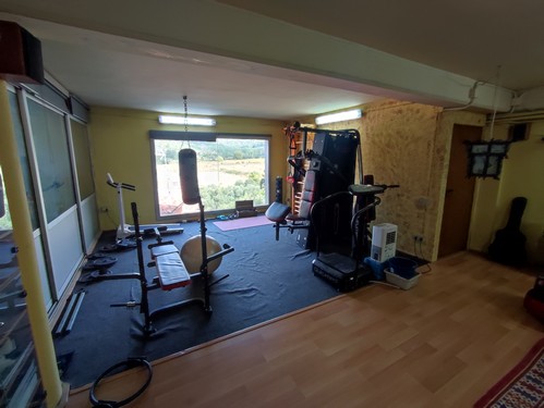 Planta Inferior: En la planta baja encontramos una gran zona de garaje con capacidad para varios vehículos, zona de almacén/trastero y un espacio ideal para gimnasio o sala polivalente. También encontramos una bodega en esta altura.