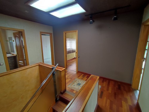 La zona de noche se encuentra en la planta superior, donde disponemos de cinco habitaciones dobles y una habitación individual, todas con buena iluminación natural y con espacio suficiente para personalizar según las necesidades del nuevo propietario. En esta planta se ubican también dos baños completos, uno de ellos equipado con jacuzzi. Además, encontramos una sala fitness de 30 m² con sauna terapéutica, perfecta como espacio de bienestar.