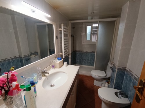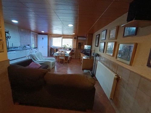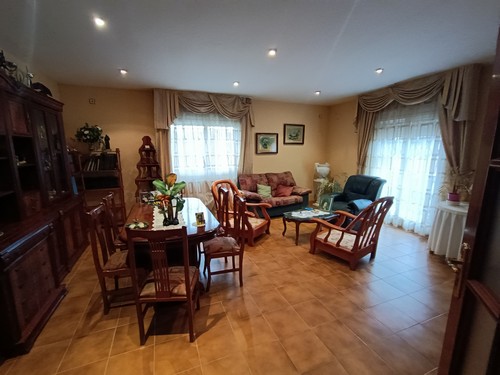 La planta superior corresponde a la vivienda principal, amplia y cómoda, con una distribución pensada para el día a día. Al entrar encontramos un gran salón-comedor con espacio suficiente para crear un ambiente cálido y familiar. Junto a él se ubica la cocina office, práctica y perfectamente integrada en la rutina diaria. En esta misma planta encontramos la habitación principal, de grandes dimensiones y con baño en suite, además de una segunda habitación doble y una habitación individual, todas ellas con buena iluminación natural. La calefacción mediante radiadores eléctricos permite regular el confort de forma sencilla.