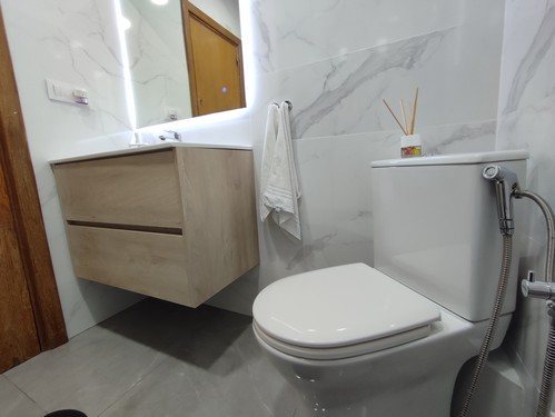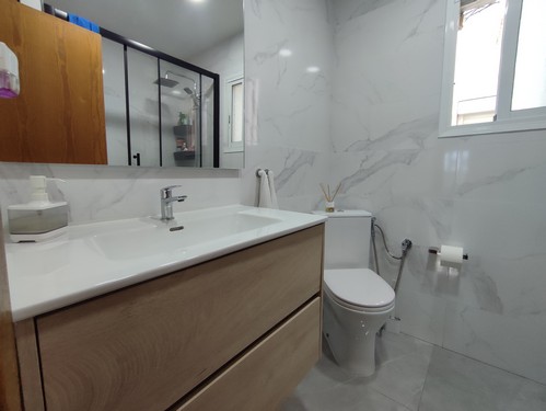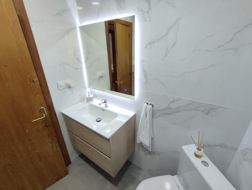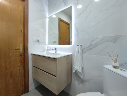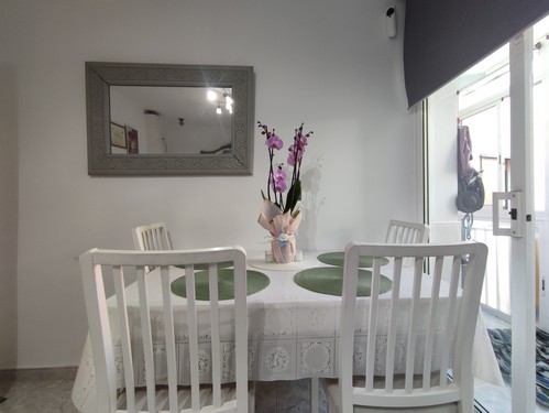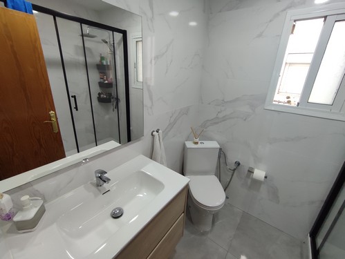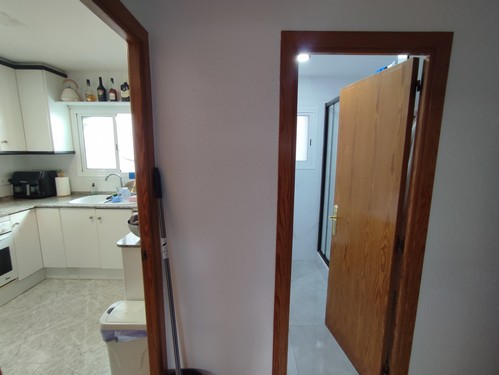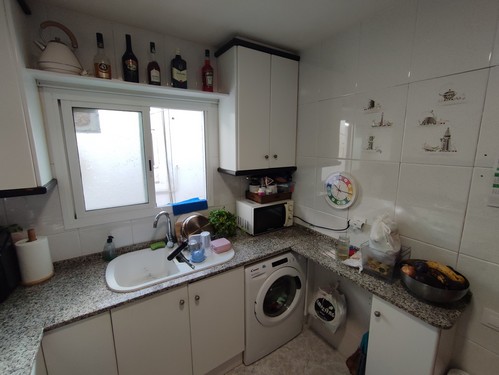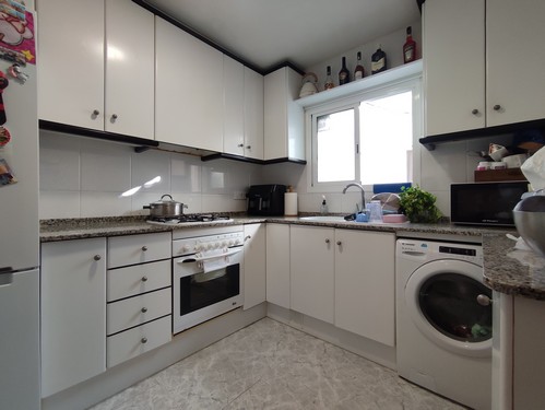 Al acceder, encontramos una zona de salón-comedor muy luminosa, que conecta directamente con el espacio destinado a lavadero, una estancia con ventana, zona para colgar la ropa y un pequeño rincón de almacenaje que resulta especialmente práctico para el día a día.