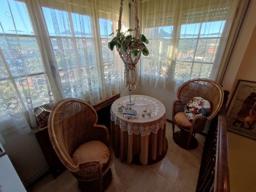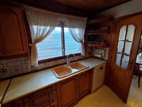 El acceso principal nos sitúa en la planta baja, donde un hall de entrada da paso a un salón-comedor muy luminoso, con chimenea y salida a un balcón amplio desde el que se disfrutan unas vistas totalmente despejadas. Junto al salón encontramos la cocina, cómoda y funcional, con salida directa al patio trasero, una zona muy agradable con árboles frutales. En esta misma planta se ubica un aseo de servicio, perfecto para la zona de día.