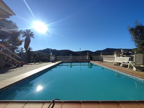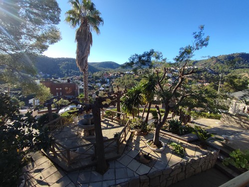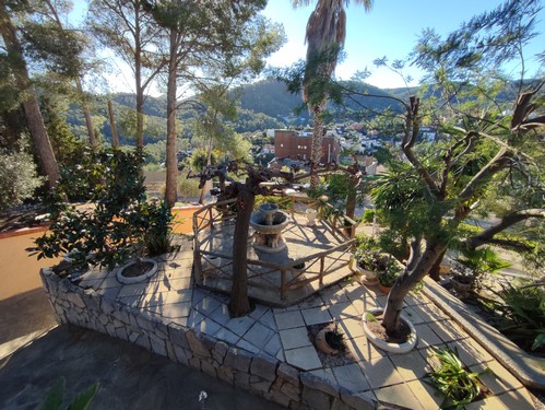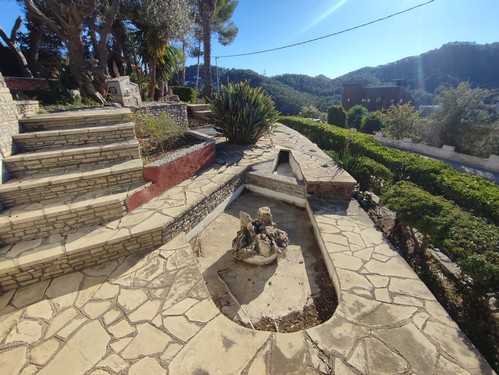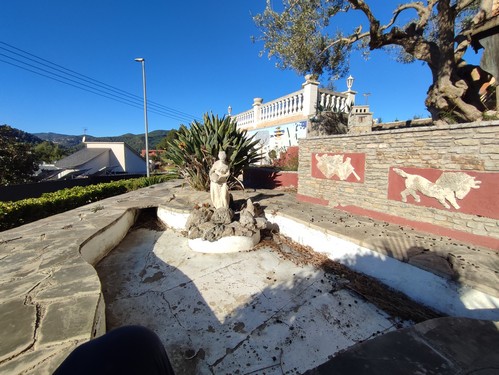 Los exteriores se distribuyen en distintos niveles y ambientes: porche de acceso, jardines muy cuidados, terrazas posteriores, fuente con estanque, porche adicional en la zona baja y un local técnico para la piscina. El acceso desde la calle se realiza mediante portal automático y la orientación elevada de la finca garantiza luz, privacidad y unas vistas inmejorables.