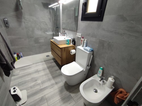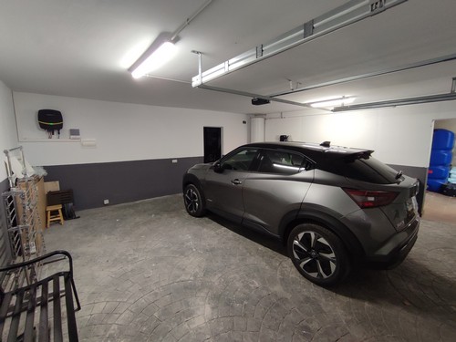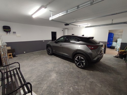 Accedemos a la vivienda desde la planta inferior, donde nos encontramos con un pequeño jardín de bienvenida que da acceso a un amplio garaje de 60 m² aproximadamente con capacidad para dos vehículos, puerta eléctrica y zona de almacenaje. Un espacio ideal tanto para aparcar cómodamente como para destinar a taller, almacenamiento adicional o zona multiusos. También nos encontramos la sala que se ocupa de todo el sistema de equipamiento de la piscina. La piscina se encuentra situada justo encima de dicha sala, garantizando su limpieza y abastecimiento.