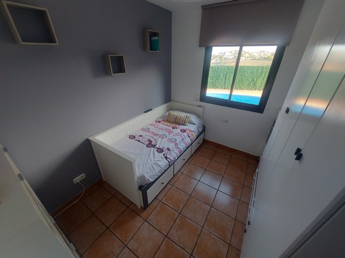 Planta Superior: Encontramos la zona de vivienda distribuida en gran salón/comedor con salida directa a la zona del jardín/piscina, amplia cocina office totalmente equipada, 3 habitaciones individuales, 1 habitación en Suite con su baño completo privado con plato de ducha y un baño adicional para dar servicio al resto de estancias de esta altura.