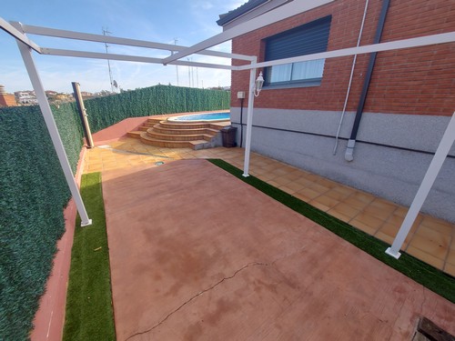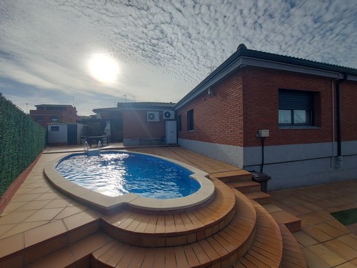 En zona tranquila, muy bien comunicada y cerca de muchos servicios y comercios, encontramos esta magnífica casa con piscina de 247 m2 construidos en el 2004 sobre una parcela de 398 m2 según los datos ofrecidos por el catastro.