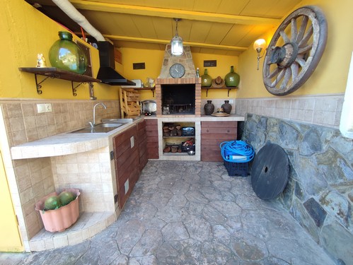 En el exterior encontramos varias terrazas, zonas ajardinadas, zonas ideales para destinar como huerto, espectacular porche con barbacoa y la zona de la piscina para disfrutar durante los meses más calurosos del año.