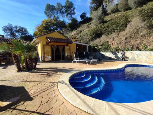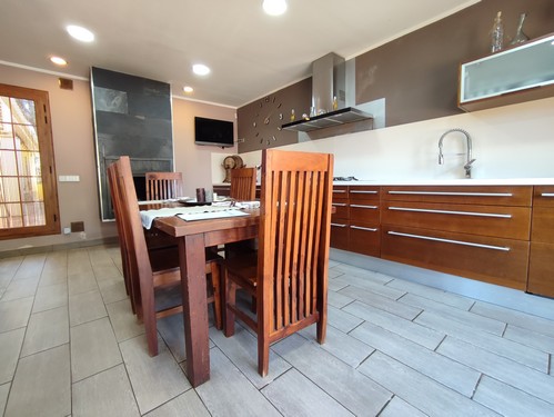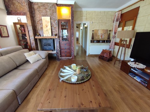 La vivienda distribuida en una sola planta dispone de bonito recibidor que nos da acceso a espectacular cocina totalmente equipada y reformada con chimenea y acceso directo a la zona de la piscina. Desde el recibidor también tenemos acceso al salón/comedor con chimenea que a través de un pasillo/distribuidor nos da acceso a la zona de noche compuesta por 3 habitaciones (2 dobles, 1 individual), un baño completo con plato de ducha y un aseo de cortesía. Desde una de las habitaciones dobles encontramos un bonito vestidor.