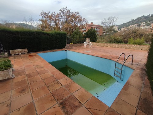 En el centro de la Palma de Cervelló, encontramos esta gran vivienda con piscina de 461 m2 construidos en el 1974 sobre una gran parcela de 2697 m2 según los datos ofrecidos por el catastro.