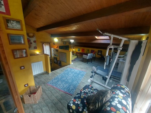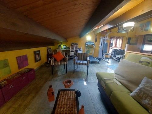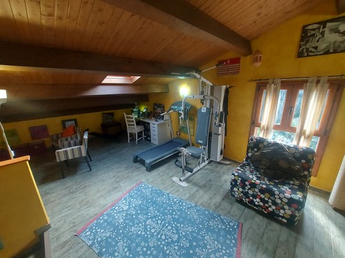 Planta Buhardilla: En esta altura encontramos techos abuhardillados de madera y bonitos claraboyas que ofrecen muchísima luz en el interior. Actualmente ubicamos un salón/comedor secundario, zona de gimnasio, sauna, una habitación doble y baño completo con ducha de hidromasaje para dar servicio a todas las estancias de esta altura.