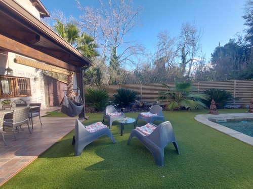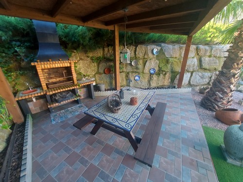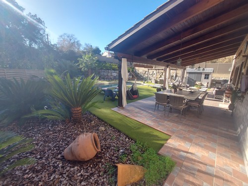 Cabe destacar el precioso exterior de esta vivienda donde encontramos una gran piscina de agua salada, espectacular zona de porche con zona de barbacoa, cocina exterior y zona bar ideal para disfrutar con amigos y familiares.
