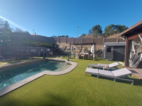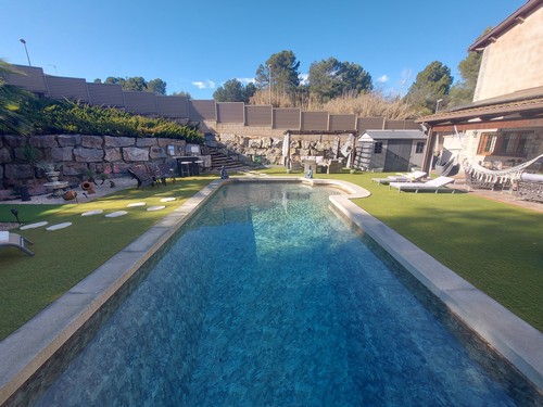 En Rubí, en la urbanización de Sant Muç, muy bien comunicada y con muchísima privacidad, encontramos esta espectacular casa con piscina de 334 m2 construidos en el 2012 sobre una parcela de 799 m2 según los datos ofrecidos por el catastro.