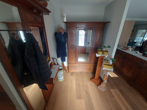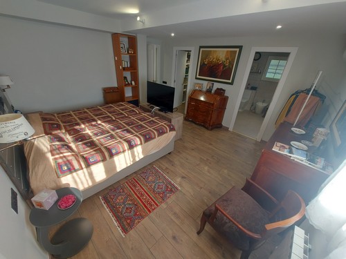Planta Principal: Nos encontramos un bonito recibidor que nos da acceso a amplio salón/comedor con chimenea abierto con gran cocina totalmente equipada. Mediante un distribuidor con armarios empotrados, accedemos a un baño completo con plato de ducha y una gran habitación en Suite con vestidor y baño completo privado con plato de ducha.