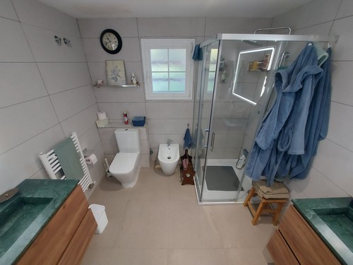 Planta Superior: Encontramos una habitación doble con vestidor y salida a gran terraza con unas increíbles vistas a la montaña y su naturaleza, una habitación en Suite de gran tamaño con vestidor y baño completo con plato de ducha y un baño completo adicional con plato de ducha para dar servicio a todas las estancias de esta altura. También encontramos una estancia con armarios ideal para destinar como zona de almacenaje.