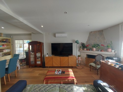 La vivienda dispone de calefacción mediante radiadores a través de gasoil, aire acondicionado en la mayoría de sus estancias y placas solares.