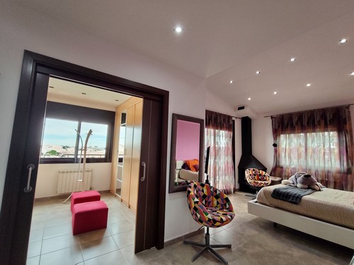 Planta Primera: Encontramos la zona de noche, está formada por bonito distribuidor con vistas al salón/comedor de la planta principal, 1 habitación doble, 1 habitación individual, un baño completo con plato de ducha y una impresionante Master Suite de gran tamaño con precioso vestidor y gran baño completo con jacuzzi y plato de ducha. Desde la Master Suite tenemos acceso a un precioso balcón/terraza con espectaculares vistas al pueblo de Masquefa y sus montañas.