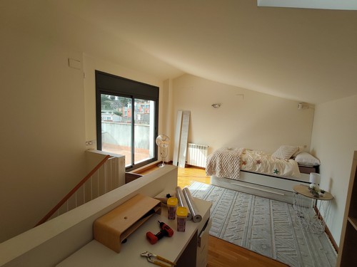Planta Buhardilla: Encontramos una estancia completamente diáfana para darle cualquier tipo de uso. Desde gran habitación adicional, gran despacho/oficina, sala de juegos, gimnasio o cualquier otro tipo de uso. Desde esta altura tenemos acceso gran terraza solárium con vistas a la comunidad.