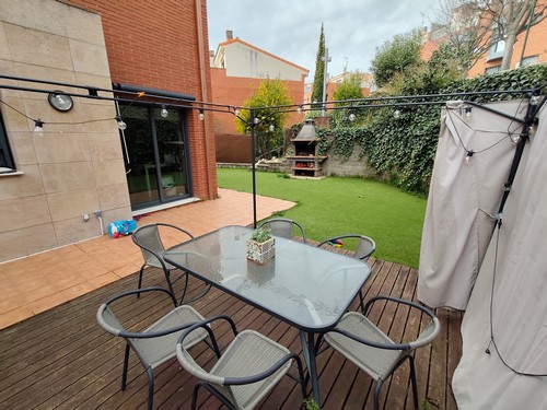 En el exterior encontramos el jardín de buen tamaño con partes destinadas a terraza y otras a jardín. Dispone de espectacular zona de barbacoa y bonita zona chillout para disfrutar de los meses más calurosos del año con amigos y familia.