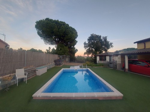 En Cervelló, casa independiente de 280 m² con vistas privilegiadas, gran luminosidad y múltiples espacios: salón con chimenea, 3 habitaciones, despacho, ático polivalente, bodega, garaje y casa anexa con zona de ocio y piscina.