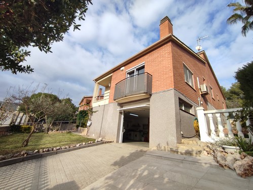 En la urbanización de Can Santeugini, en zona tranquila y rodeada de naturaleza, en Castellbisbal, encontramos esta magnífica casa de 373 m2 construidos en el 1990 sobre una parcela de 843 m2.