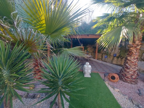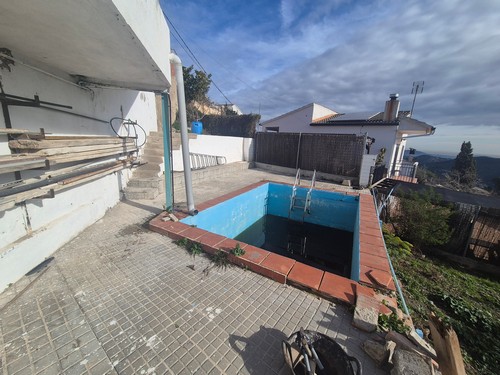 En el exterior encontramos parcela bastante llana con piscina que actualmente no está en funcionamiento. La parcela ofrece muchas posibilidades.