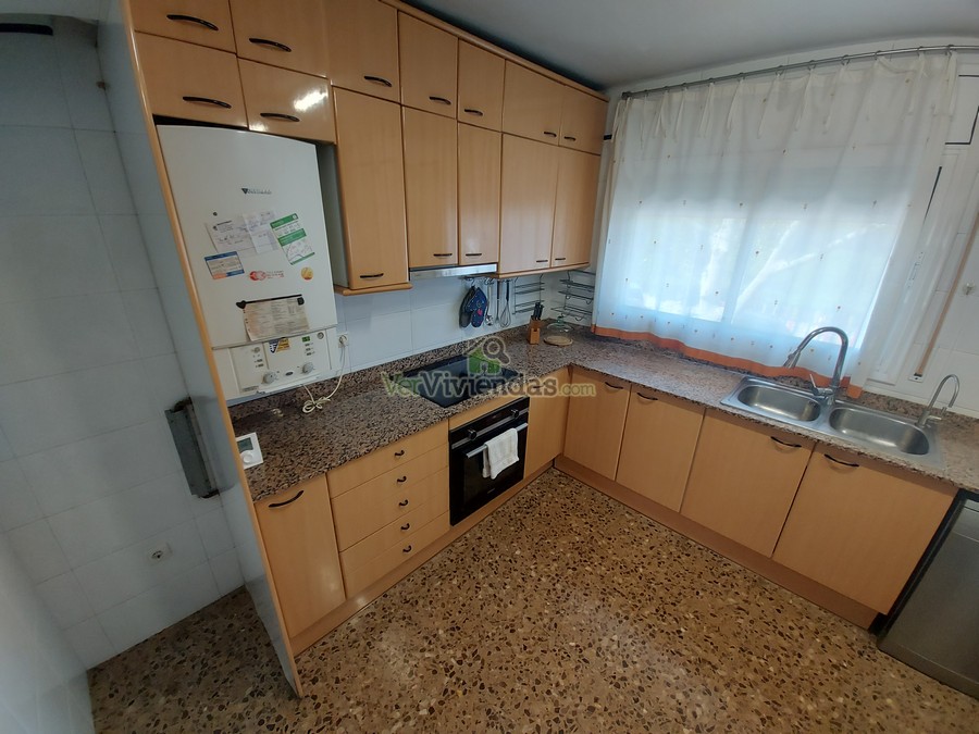 La cocina, grande y funcional, cuenta con galería y ofrece un excelente espacio tanto de trabajo como de almacenaje.