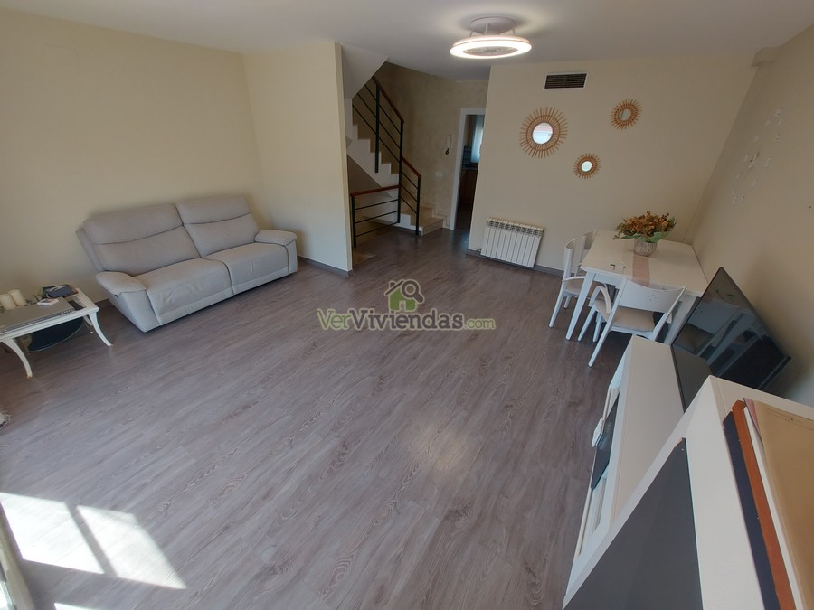 El salón-comedor, amplio y con mucha luz natural, tiene salida a un balcón que da acceso directo al jardín privado, creando un espacio ideal para disfrutar en familia o con amigos.